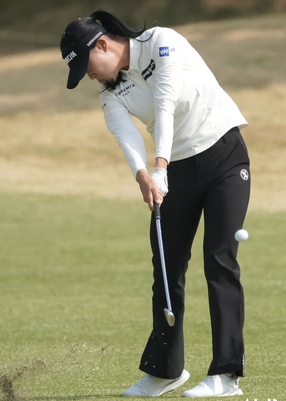 특히 바람이 부는 상황에서도 일관된 스윙 템포를 유지하며, 기술 중심의 플레이를 선보입니다.