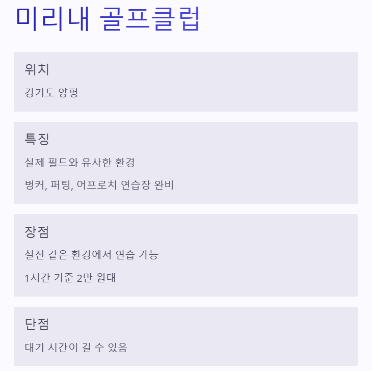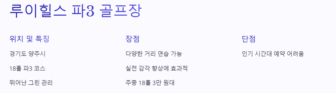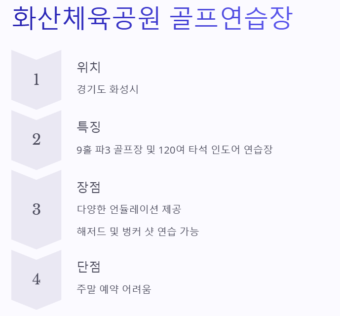 각 연습장의 특징, 장점, 요금 정보 등을 자세히 안내하니, 자신에게 딱 맞는 연습장을 찾아보세요.