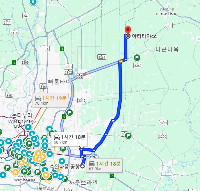 방콕 아티타야 CC는 접근성이 매우 좋으며, 수완나품 국제공항에서 동북부 방향으로 약 1시간 거리에 위치해 있습니다.